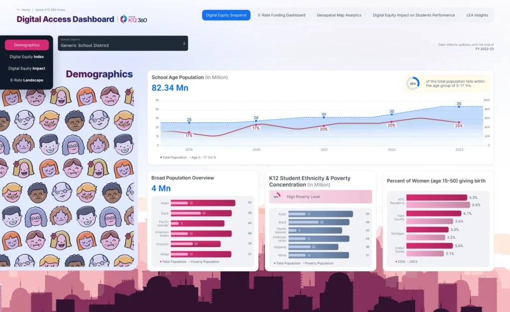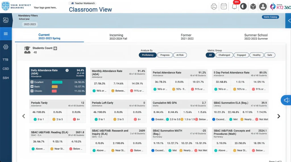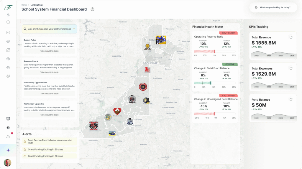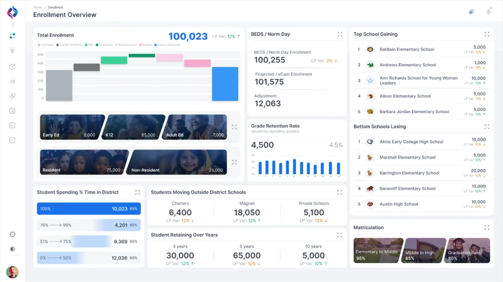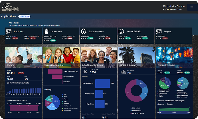 Transform how your district sees and uses data. From student access and enrollment trends to operational health and performance metrics—our AI-powered dashboards deliver real-time, role-based insights to help education leaders drive smarter, faster, and more equitable decisions.