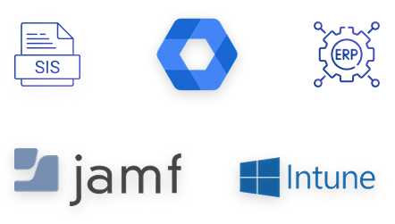 Syncs with SIS, ERP, Google Admin, Jamf, Intune, and legacy platforms—no data loss, no headaches.