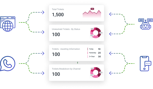 Handle service requests through email, web, mobile, WhatsApp, or AI chatbot—auto-routed and tracked with full SLA visibility.