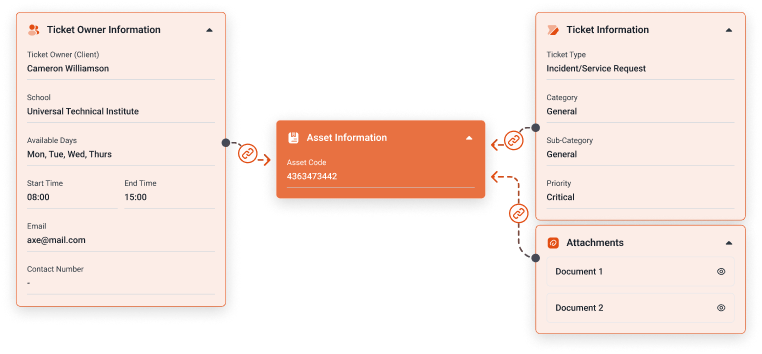 Link every ticket to the related asset for real-time visibility and audit-ready records—no more double entry.