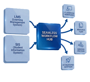 Deep integration with existing learning and student information systems ensures resources flow directly into classroom workflows reducing friction and accelerating adoption.