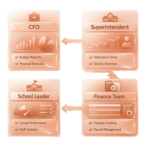 Deliver the right data to the right people—CFOs, superintendents, school leaders, and finance teams—through personalized dashboards and permissions that match each role’s priorities and responsibilities.