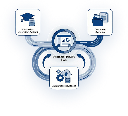 Connects with your strategic dashboards (StrategicPlan360), SIS, and document systems for streamlined access to data and context.