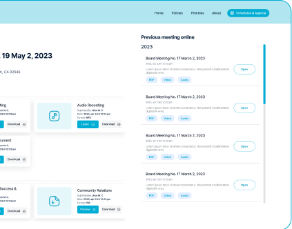One click to generate board-ready PDFs or push approved documents to your public site.