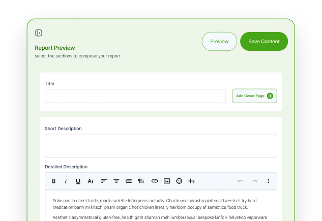 Build section-based content with formatting tools, preloaded templates, and structured editing for multiple contributors.