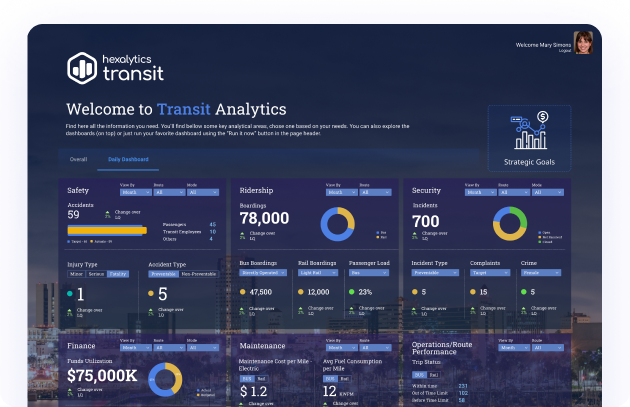Most tools visualize data. Transit 360 organizes data around how transit agencies actually operate, using a domain-specific data model and leadership-driven KPIs developed by Hexalytics.